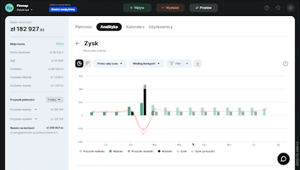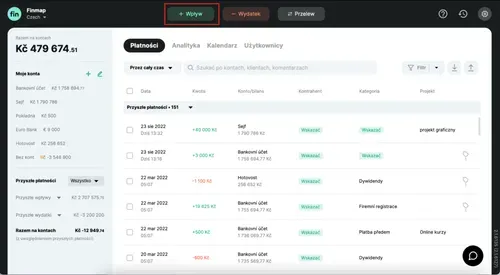 4. Dodatkowo, po podłączeniu integracji, wszystkie rachunki, wystawione za pomocą Fakturowni i opłacone przez Twoich klientów, będą wyświetlane jako wpływy. A te, które zostały opłacone w Fakturowni przez Ciebie – jako wydatki.
