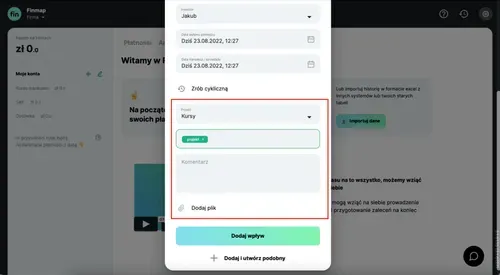 5. Możesz również dodać swój komentarz, tag*, albo nawet załączyć plik (na przykład zdjęcie faktury, umowę, rachunek i t.d.).