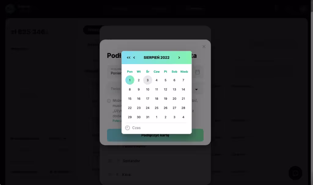 2. Wybierz, z jakiej daty chcesz przenieść dane do Finmap. Możesz załadować dane za dowolny okres.