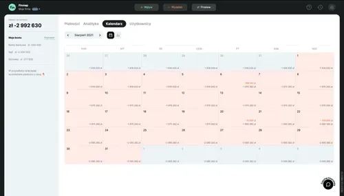 Dzięki Kalendarzowi będziesz zawczasu widzieć wszystkie zaplanowane wpływy i wydatki. To znaczy, po pierwsze, nie zapomnisz o nich (na przykład, nie zapomnisz w odpowiednim czasie dokonać spłaty raty kredytowej).