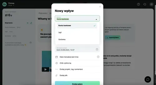 3. Wybierz, na jakie konto wpłynęły te środki. Jeżeli to gotówka, to najpewniej warto wybrać Sejf.