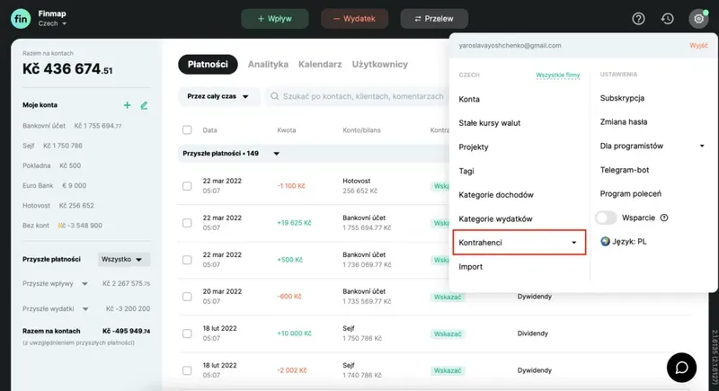 Jak dodać Kontrahenta: 1. Przejdź do swojego konta w Finmap