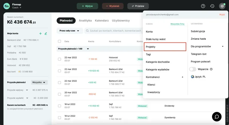 Od teraz przy dodawaniu każdej transakcji będziesz mógł wybrać, jakiego projektu dotyczy.