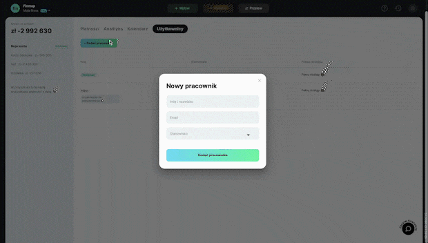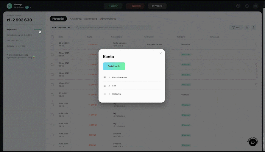 wdrożyć systematyczną rachunkowość finansową; uporządkować zadłużenia, wiedzieć, wobec kogo mamy dług, a kto – wobec nas; zobaczyć luki gotówkowe, aby więcej do nich nie dopuścić; zrozumieć, czy firma ma zyski, czy jest stratna; zebrać dane, który z produktów przynosi największy zysk. Rozwiązanie od Finmap Aby od razu wykluczyć ryzyko niesystematycznego korzystania z serwisu (= sytuacje typu „zapomniałem, wpiszę później, nie chciało mi się, mam ważniejsze zadania”), w pierwszej kolejności Nikita zlecił prowadzenie rachunkowości dyrektorce finansowej, będącej zarazem jego mamą. Wcześniej nigdy nie prowadziła rachunkowości w serwisach, ale w Finmap wszystko okazało się być łatwe i zrozumiałe.